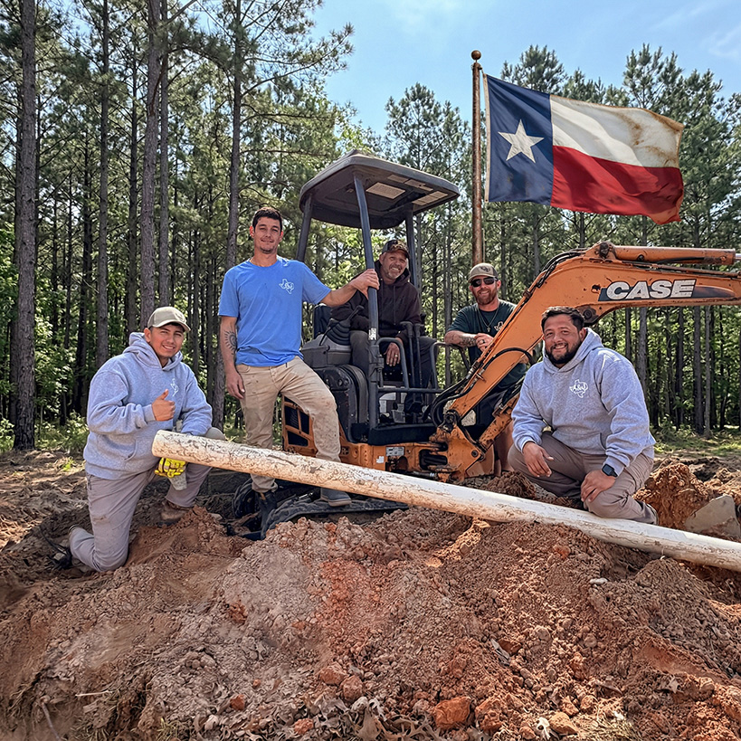 We lay your sewer and drain systems during new construction. Installation properly sloped, properly sized. Serving custom builds near Lake Fork and throughout Northeast Texas