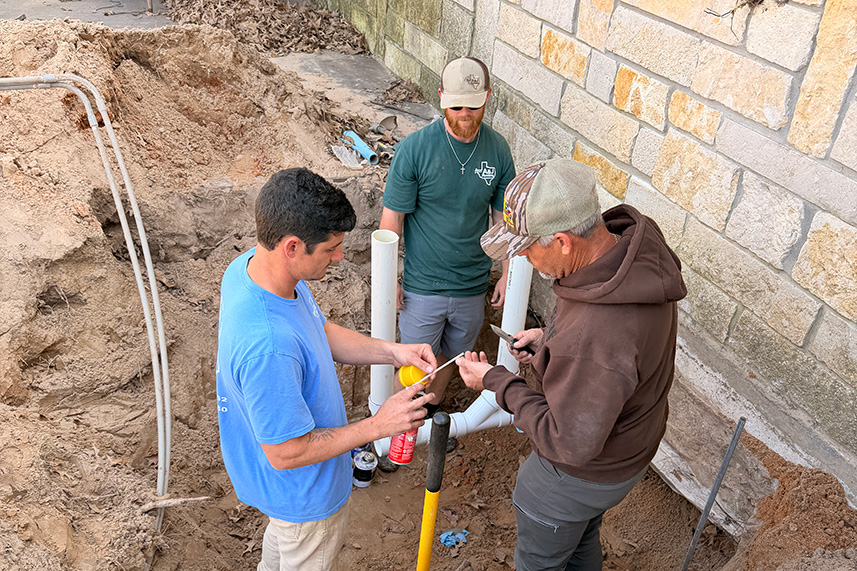 A busted pipe on a job site doesn't wait for Monday morning. We respond fast to new construction sites across Northeast Texas to assess damage, make repairs, and keep your build on schedule.